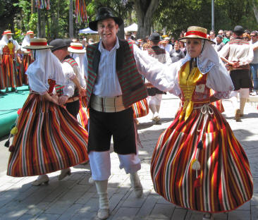 Befolkningen i traditionella kläder vid en fest i parken Garcia Sanabria i Santa Cruz, Teneriffa. Fotograf: Helena Somervalli De kommer, de små signorinorna, en efter en, ledsagade av sina kavaljerer, strålande belåtna och lyckliga. Klädda i sina granna, pittoreska dräkter, rosor, glitter och mantillor, hoppar lätt och graciöst upp i sina eleganta viktorior med spanska fullblod eller i de stora lyxbilarna. Men deras kavaljerer och kuskar verkar båda lite löjliga. Spanjorer från Bullfait i Dining jacket ser sorgligt ut, passar inte till damernas bedårande apparition (uppenbarelse). Och krokryggiga kuskar på de eleganta vagnarna, hu då! Pöbeln formligen kryper tätt på vagnarna, söker att kyssa damernas klädfåll, gapar av förvåning och vördnad. Tigger pesetas, men observeras inte av de glada sällskapen. Vi har tillbringat en god del av natten på friluftsfesten i den stora parken Plaza del Castillio. Musettorkestern var på 100 man. Vill man se den fina världen är det lyckligt att kunna närvara vid en fest efter tjurfäktningen – man ser glada skämtande grupper, av de skönaste unga kvinnor och män genomströva parken, slå sig ned här och där i intimaste grupperingar oupphörligt sekunderande sitt prat med solfjädrar vilka de behandlar med en otrolig grandezza. Det sägs att societetens unga kvinnor här på Santa Cruz, i skönhet och behag fullkomligt mäta sig med sina andalusiska kusiner i Sevilla och Cadiz. Drama på hotellet Detta lilla hotell vid en trång gata, mitt i staden, är ganska intressant. Det skiljer sig från de kontinentala hotellen liksom spanska båten skiljer sig från Grantully Castle. Hotellets matsal är belägen i källarvåningen och köket är egentligen den öppna gården där en stengång leder från matsalen. Tjänare, kinesisk kock och mulatter och maten oklanderlig. Ett utmärkt rehnvin billigt dricks här, vid gatan ligger många små, roliga butiker, där vi handlat en del billiga småsaker. En vinstuga mitt emot vår lilla altan, därifrån vi genom de gröna spjäljalusierna kan bevittna en del roliga passager. Här utanför mötas åsnecabbarna, här kommer de sökande och grälande kvinnorna, för att hämta sina vinkrukor, här stämmer musikanter av olika instrument, möte. Här är natt alltid dag. Folket alltid vaket, alltid beder, sjunger och röker, alltid låter sina tuppar gala från taken och sina åsnor och kameler böla i gränderna. Det är roligt att på nära håll betrakta infödingarnas liv! De har kastat ut den kinesiska kocken. Polisen har gjort razzia. Uppassaren, mulatten, har gjort kamraten sällskap. Värden själv med svetten i pannan har gjort allt för att betjäna sina gäster. Värden tröstar sig med att kyparen i den allmänna villervallan fått några glas för mycket och att han snart ska återvända. Verkligen – där kommer han, frackklädd, lite slokörad och inte på riktigt stadiga ben. Lägger fram matsedeln – vi begär soppa. Han serverar första tallriken i mitt knä. Min man rusar upp, tar honom vid örat och uttrycker sig lite häftigt, men ej fullt begripligt på svenska. Mr P fortsätter på engelska. Herrarna bleknade av indignation. Kyparen står på darrande ben och ser olycklig ut – men så tittar jag lite förlåtande och uppmuntrande samt tecknar att det inte är så farligt, genast störtar han över mig med rena servetter och vatten och vi gnor gemensamt till det är ”all ready”. Herrarna ser förargade ut under återstoden av middagen, ingen dricks, stackars gosse. Mitt hjärta veknar, jag ger honom en vänlig klapp å axeln, han börjar hoppa jämfota, skratta och nicka åt oss alla 3 – en spänning som upplöste sig i skönaste harmoni, å vår sida – kyparen å sin. Plaza de la Constitution Favoritplatsen för aftonpromenaden – torgets vita jämna stenläggning, de elektriska kupolernas kalla ljus ger ett förnämt och på samma gång glatt intryck över det brusande livet och de varma sydlänningarna som njuter några ögonblicks svalka och sällskapsliv. Stadens vapen, ett marmorkors reser sig framför spanska klubben, där en skara politiserande senôres flanerar och kurtiserar de förbipasserande damerna. På casinots utbyggda balkonger sitter stadens förnäma damer i all sin glödande kolorit. Det yngsta Santa Cruz ackompanjerar orkestern med sina små kastanjetter. Från nedre delen av torget ser vi Candelaria monumentet resa sig mot fästningen och vita segel fyller Santa Cruz upplysta vackra hamn. Sätter vi oss på en soffa för att pusta ut, strax har vi en borstpojke vid våra fötter. De blinda tidningsförsäljarnas välkända obehagliga rop skorra i våra öron: La Perea! La Perea! På elektrisk ”Travelling” uppåt Tenerifes mest natursköna platser Vi har lämnat staden för ett par timmar sedan, besökt biskopens palats, Institutio de Canarios. Vid de vackra gamla oljemålningar, vi där mest fäste oss vid, var en ståtlig duk som upptog hela fonden, föreställande sjöslaget vid Santa Cruz år 1779, då amiral Nelson blev tillbakaslagen och fick lämna sina flaggor, som vi tidigare sett förvarade i glasskåp i Iglesia de la Conception. En häck av våra hagtornshäckars storlek av den blåvita Cristi korsblomman utgör en förtjusande inramning av blomstergrupper som upptar hela gården kring detta palats. Vi har med våra små åsnors hjälp uppnått toppen av kullarna, Pico de Teide7 lyser vit i solskenet över våra huvuden och trots att vi är flera hundra fot över havet tycks det ligga utbrett blåklintsblått alldeles under våra fötter. En syn som ett färgspel i själva luften, som inte med ord kan beskrivas. Vi mötte en kamelkaravan, som kom med vatten från cisternerna. Araber i sina vita kappor och kameler i samma gulbruna färg som de slingrande stigarna mellan kullarna, tager sig ovanligt vackert ut.