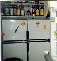 Bartender – ett kul jobb Den första julen hade vi besök av släktingar på både Kjells och min sida. Bland andra kom min son Tom och hans fästmö Jenni, som stannade kvar i två månader och hjälpte oss i baren, lille Fredrik och min rara svärmor Elsa. Julafton öppnade vi inte för allmänheten, vi ville ägna oss helt åt våra släktingar. Therese gjorde i ordning ett underbart svenskt julbord, med alla de traditionella maträtterna, julskinka, köttbullar, Janssons frestelse, revbensspjäll och så vidare. Och naturligtvis julglögg. Efter att ha njutit av sol och värme och mysiga dagar med sitt barnbarn - och stundvis träffat sin son och sin svärdotter - reste min svärmor Elsa nöjd tillbaka till Sverige. ”Nu vet jag hur ni har det och att ni klarar er fint, men ni har på tok för långa arbetsdagar!” Barens spritförråd stod ovanför två höga kylskåp på tre hyllor ovanför varandra, den översta hyllan så långt uppe att jag behövde stege för att nå flaskorna. En söndag kväll hade ett stort sällskap belgare bokat bord hos oss och hela terrassen var fullsatt. Kjell spelade och sällskapet trivdes utan störande italienare – han hade stängt på söndagar. Tom hjälpte mej i baren och skulle ta ner en flaska från den översta hyllan. Han ställde sig på tå, sträckte sig upp och stödde sig samtidigt på den understa hyllan, varvid hyllan, som satt löst, välte och alla fjorton flaskorna med bland annat whisky, rom, bacardi, vodka och brandy, ramlade i golvet. Vilket brak! Glasbitar flög omkring och spriten flödade. Det blev tvärtyst ute på terrassen. Kjell slutade spela och kom in för att kolla vad som hade hänt. Jag stod blickstilla mitt ibland skärvorna och Tom såg ut att vilja sjunka genom golvet. ”Vilken tur att spriten kostar så lite på Tenerife!” ropade Kjell på engelska ut mot gästerna som brast ut i skratt och applåderade. Han fortsatte spela och Tom, Jenni, Therese och jag städade snabbt upp. Vi blev alla halvt berusade av spritångorna från golvet. Följande dag skruvade vi fast hyllorna. Inte långt senare var Kjell på väg ut från baren med fem vackra blå drinkar i höga glas. Han snubblade, brickan flög ur händerna på honom, glasen gick i tusen bitar och terrassgolvet blev en klibbig blå ocean. Återigen blev det tvärtyst på terrassen, men han reste sig snabbt, tittade sig glatt omkring och ropade: ”Fem nya bollar!” Gästerna skrattade befriat. Fem blåa drinkar blandades raskt på nytt och golvmoppen fick sig en nattfösare. Det var alltid spännande att blanda ovanliga drinkar och glädja sig åt nöjda miner. En dag kom ett omaka par in i baren; en lång och förnäm engelsk dam som gick käpprak med ett japanskt pappersparasoll spänt över sin noggrant ondu-lerade frisyr och hennes korta man med pondus-mage och mustasch några steg efter. Med djup basröst undrade damen om vi serverade Bloody Mary. Visst gör vi det, svarade Kjell och ledsagade paret ut till terrassen. Hon beställde en Bloody Mary åt sig själv och ett litet glas öl åt sin man. De blev ofta återkommande kunder efter Kjells suveräna service: han bar ut ett glas med is och vodka och de övriga ingredienserna till drinken på en liten bricka, så att damen själv fick blanda till den och krydda den efter eget behag. ”Det är första gången det händer mej att jag får drinken serverad på detta sätt”, sa hon med stor förtjusning. Sedan avnjöt hon sin drink i sällskap av en tjock cigarr, medan hennes man stillsamt sög på sin öl. Vackra drinkar väckte intresserade blickar och fick gäster att prova på nya kombinationer, men favoriten var ändå Irish Coffee som vi gjorde efter konstens alla regler. Det slog aldrig fel att då en gäst på terrassen beställde en sådan, och vi förde ut den, drogs allas ögon till den som till en magnet och sedan fick jag ställa mej att vispa grädde och blanda Irish Coffee på band, vilket jag mer än gärna gjorde. Gästerna vid bardisken tittade intresserat på och jag kände mej som huvudpersonen i ett kaffedrama där mitt öde hängde på om jag blandade drinken till belåtenhet – och om filterkaffet i termoskannan skulle räcka till det sista glaset i raden. Som ung flicka ville jag bli skådespelerska och nu spelade jag rollen som bartender med inlevelse.