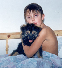 Ny familjemedlem Hösten 1994 hade många ljusa stunder, även om den galna italienaren och Pouls problem var två mörka moln på vår annars så blåa himmel. I början av november kom Fredrik på ett av sina sedvanliga besök hos sin pappa. Han var då nio år. Under ett tidigare besök hade Fredrik tjatat om att han ville ha en hund och den skulle kunna bo hos oss eftersom hans mamma i Sverige absolut vägrade att ha hund. I en svag stund hade Kjell sagt ja. Redan på flygplatsen frågade Fredrik ivrigt: ”När ska vi köpa hund?” Kjell blev lite fundersam, för han kunde ju inte gå tillbaka på sitt ord. Jag var positivt inställd till en liten hund och vi bestämde oss för att försöka få ta hand om en övergiven valp. Sådana finns det tyvärr gott om på ön. Följande dag åkte vi till San Miguel till kenneln för övergivna hundar, K9, men där fanns ingen valp för tillfället. Vi hänvisades till en djurklinik i grannbyn Guaza. Där fanns heller ingen lämplig hund, men veterinären visste berätta om två nyligen omhändertagna valpar som befann sig på djurkliniken i Los Cristianos. Vi fortsatte dit och satte oss i väntrummet bland hundar och katter och deras ägare. Veterinären kom ut och undrade vad vi ville. ”Vi skulle vilja ta hand om en hund och vi hörde att ni har två övergivna valpar”, förklarade jag. Hon sken upp: ”Det stämmer, ett ögonblick så hämtar jag ut dem.” Hon kom ut med en bur med två små valpar, en svart lurvig sak med guld-färgade tassar och ansikte, en kort, svart svansstump med långa silverhår och pigga svarta pepparögon, och en korthårig ljusbrun hund som verkade nervös. Vi behövde inte många minuter på oss för att falla för den lilla svart-bruna valpen, som kunde beskrivas som en blandning av tax och yorkshireterrier. Vi bestämde oss för den, hunden vaccinerades och uppgifterna skrevs in i datorn. ”Vad ska hunden heta?” frågade veterinären Fredrik. ”Lurvis”, kom svaret blixtsnabbt. Fredrik tog Lurvis i sin famn och vi gick in i en närliggande djuraffär och köpte halsband, koppel, mat- och vattenskålar och leksak. Fredrik var salig. Hundstackaren skakade av rädsla och vätte ner Fredriks byxor men det gjorde absolut ingen-ting. Hellre lite kiss i famnen än ingen hund. Lurvis var inte mer än drygt fyra månader gammal och ett stort - litet - charmknippe. Eftersom Annika bodde i vårt gästrum fick Fredrik sova på soffan i vardagsrummet och Ludde sov vid hans fotända hela veckan. Fredrik ägnade hela sin korta vistelse åt valpen som han var helt betagen i. Då han reste hem till Sverige en vecka senare trillade stora tårar ner för hans kinder då han tog farväl av Lurvis – som vi kallade Ludde för enkelhetens skull. Fredrik skulle bli sexton år gammal innan han lyckades lämna Ludde utan tårar. Ludde hade tillgång till balkongen då vi befann oss i baren och en natt då vi kom hem mötte oss en härlig syn. Ludde hade fått tag på asken med mina tamponger, slitit sönder dem en efter en och halva balkongen såg ut som en stor snödriva. Han tittade på oss med öronen på skaft, svansstumpen roterande och peppar-ögonen fulla av stolthet: ”Titta husse och matte vad fint jag har gjort det!” En annan gång hade garderobsdörren stått på glänt och alla våra skor låg på balkongen. Alla var inte sönderbitna. Den första tiden trodde vi att Ludde inte kunde skälla, men en kväll fick han syn på sin egen spegelbild i balkongdörrens glasskiva. Han skällde ursinnigt och gick till attack, men stoppades av glaset och tog förvånad några steg bakåt och tittade på fienden framför sig som så fräckt attackerade honom. Vi tog Ludde på promenader längs stranden och han älskade att simma, men han attackerade vågorna som jagade honom upp på stranden, bet i vågskummet och skällde ilsket. En dag simmade han ut en bit tillsammans med en lekkamrat, en schäfer. Då vi ropade att han skulle komma tillbaka vände han och simmade in mot stranden, men schäfern tog tag i hans lilla svansstump, som såg ut som en silverskimrande liten fisk som simmade på ytan, och drog honom bakåt, medan Ludde frenetiskt trampade på för att komma framåt. En dråplig syn som fick oss att vika oss av skratt. Det blev inte mer än elva år av skratt med vår högt älskade Ludde. Fredrik var på sedvanligt sommarbesök hos oss och Ludde hade redan en tid varit i dålig kondition. Veterinären konstaterade att han hade förstorat hjärta och han orkade inte längre gå långa sträckor. Han fick medicin och specialföda men blev snabbt svagare och ville till slut inte äta alls. Trots det satte han sig sin vana trogen vid köksdörren då vi lagade mat men då vi närmade oss med små läckerbitar vände han bort huvudet. Så en dag lade han sig på mattan i en konstig ställning och tittade på mej där jag satt vid datorn med ögon som bad om hjälp. Vi förstod att stunden var kommen. Han skulle inte behöva lida och jag ringde veterinären som sade att vi kunde komma direkt. Fredrik tog Ludde i famnen och åkte iväg med Kjell. Jag klarade inte av att följa med. Då de kom fram knackade Kjell på dörren och blev tillsagd att vänta lite. I samma ögonblick sade Fredrik: ”Pappa, Ludde dog nu”. De gick in till veterinären som konstaterade att hunden var död. Han dog i Fredriks famn på exakt samma ställe där Fredrik första gången hade tagit honom i sin famn. En cirkel slöts. Han kom hem i en ask av kartong och ligger nu begravd i vår trädgård under några vackra lavastenar. Efter vissa av Luddes manövrar döpte vi honom så småningom till Ludde "Houdini" Guldtass, hundarnas utbrytarkung. Han återkommer i flera kapitel framöver!