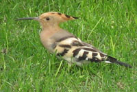 En härfågel i närbild, denna gång på vår gräsmatta